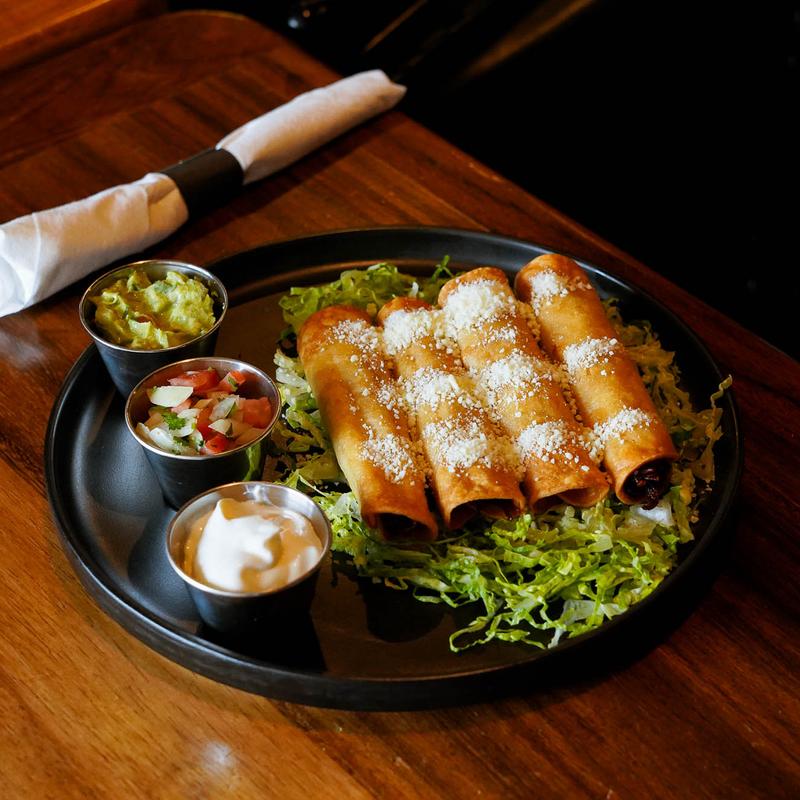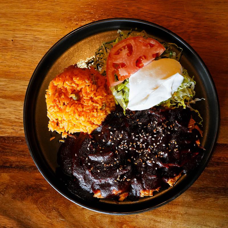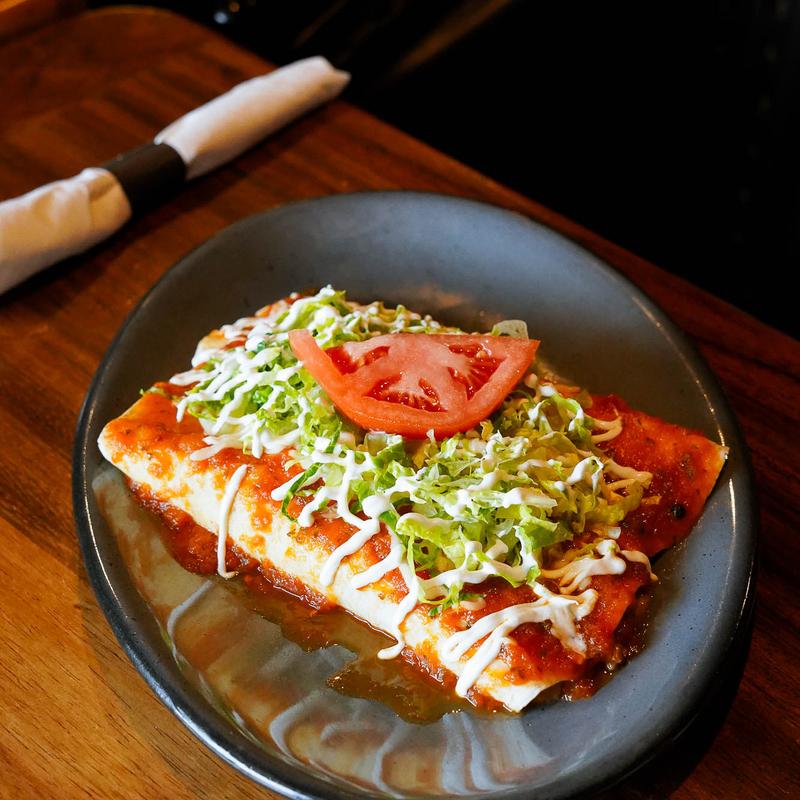 Traditional plate, with your very own twist. Choose from One, Two, or Three Items | Served with refried beans and rice • Choose